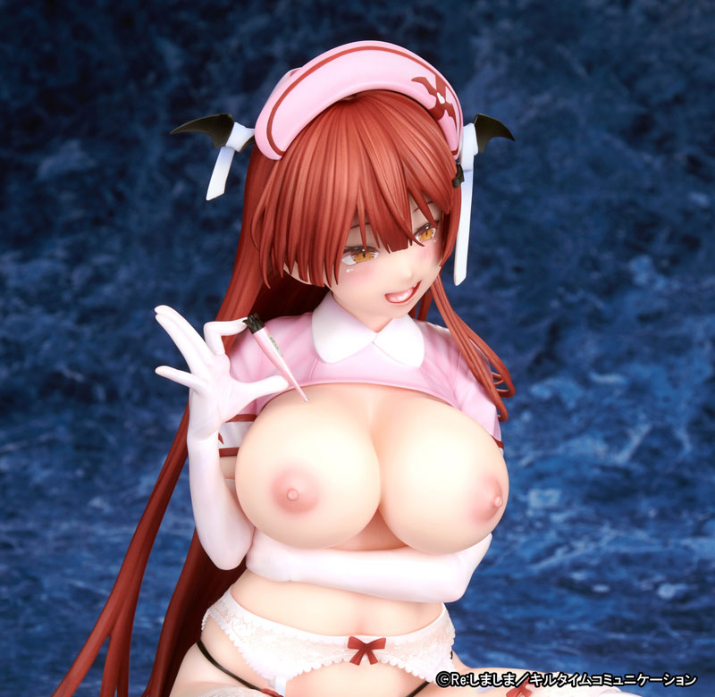 「Re:しましま」が描く『コミックアンリアルVol.84』の表紙を飾った、ヴァンパイアナース「マリア」がついにフィギュア化!大人気イラストレーター「Re:しましま」先生が描く可愛らしく蠱惑的なヴァンパイアナースが待望のフィギュアになりました♪フィギュア化に伴い先生自ら命名された『マリア』ちゃん。本商品はフィギュア用にアレンジされたイラストを元に立体化。フィギュア“オリジナルギミック”として「おっぱい」パーツを≪ブラあり≫⇔≪ブラなし≫の2種から好みに合わせて組み換えが可能で、トップレス状態で飾って頂くことが可能です。また、台座はファー生地をあしらった特製台座が付属致します。1/5スケール(全高約20cm)のたわわなグラマラスボディをお手元でを心ゆくまでご堪能下さい。