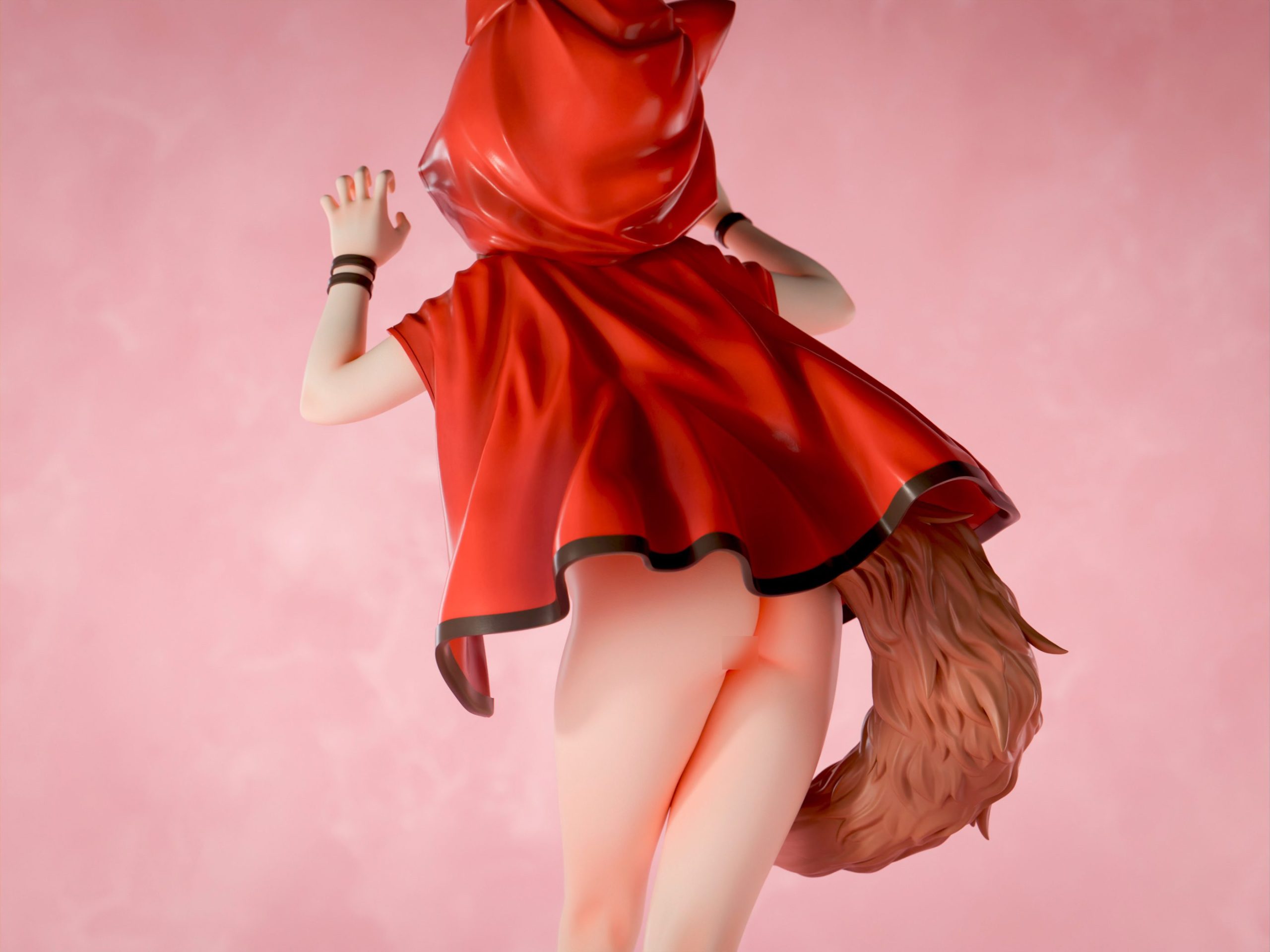 赤ずきんに変装したオオカミちゃんが狩人さんを誘惑していました。赤ずきんをかぶってガオーポーズのオオカミちゃんをフィギュア化しました。